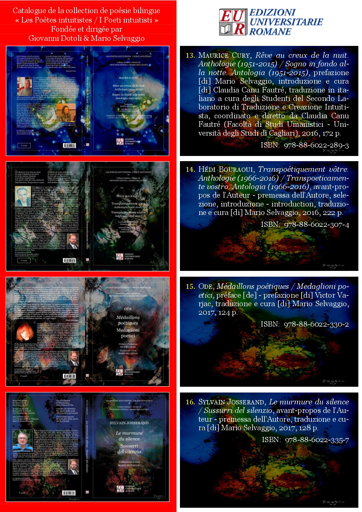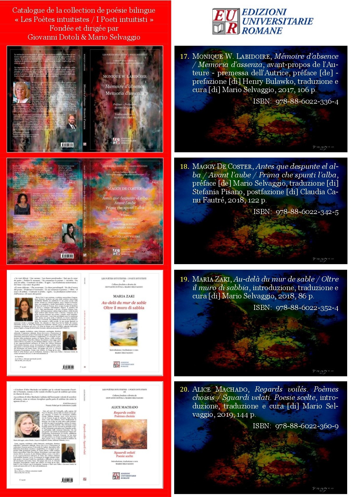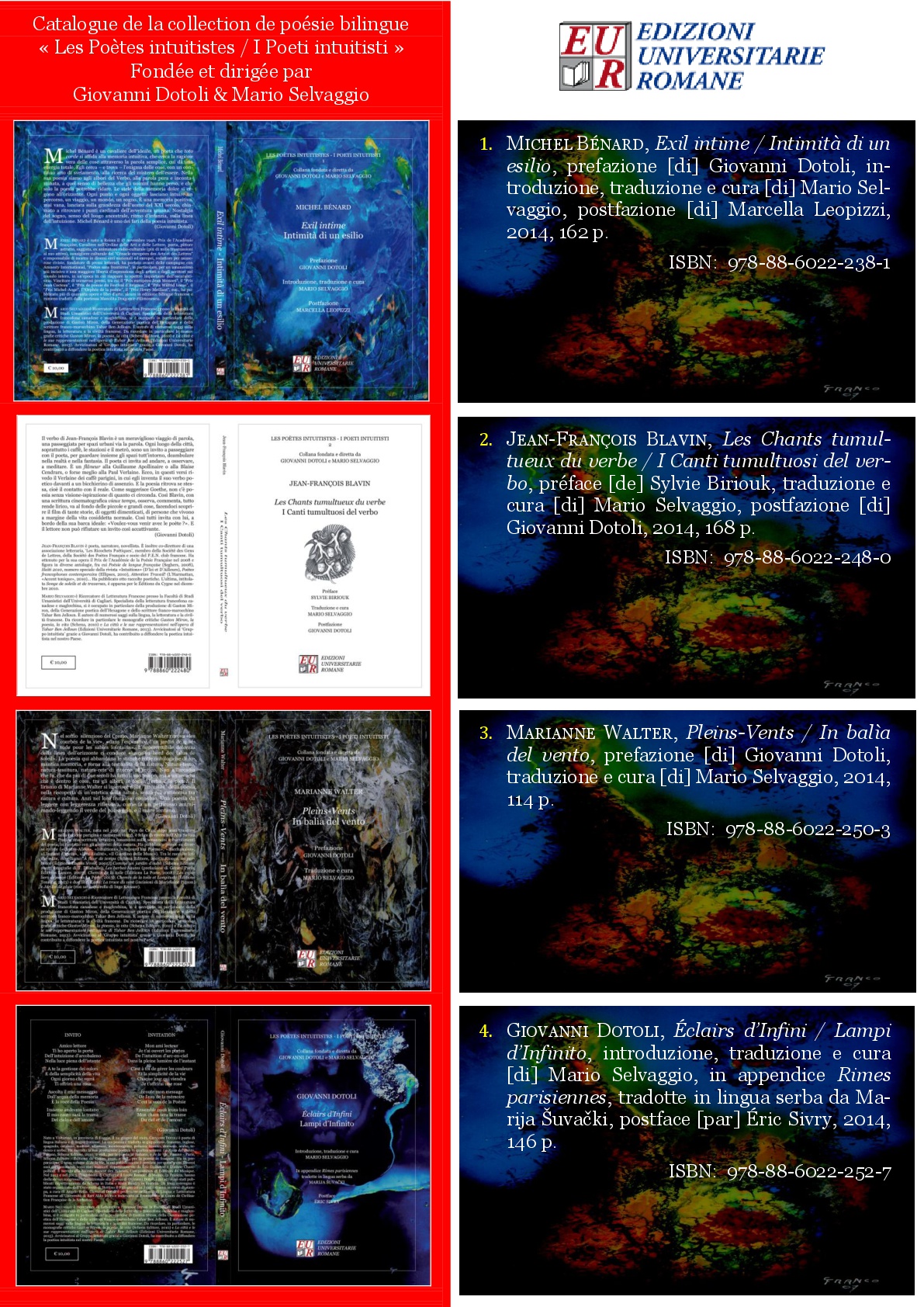 Catalogo della Collana “Les Poètes intuitistes – I Poeti intuitisti” – fondata e diretta da Giovanni Dotoli & Mario Selvaggio – Edizioni Universitarie Romane (2014-….)
