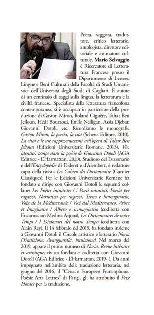 Grudina Brice, “Canto ribelle” (2021) Brice Grudina, Canto ribelle, prefazione [di] Mario Selvaggio, Alberobello, AGA Editrice, coll. « L’Orizzonte n° 107 », 2021, 164 p. [In copertina: Bernadette Besson, Il dolore, olio su tela, 1989]. 0 0 votes Valutazione dell'articolo