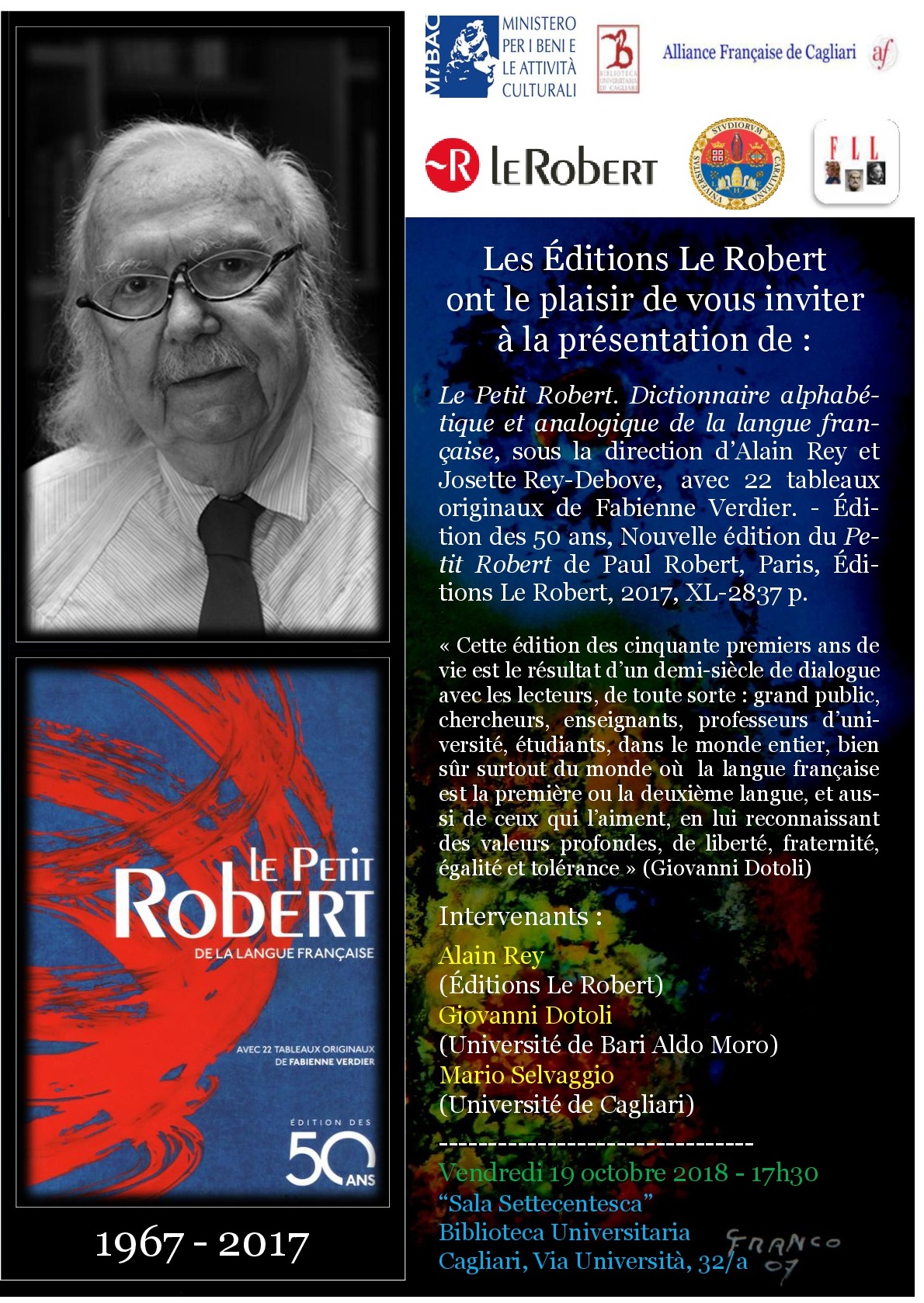 Convegno Internazionale: “Dictionnaires et encyclopédies. Hommage à Alain Rey” [Ventunesime Giornate Internazionali Italiane dei Dizionari] (Cagliari, 19 ottobre 2018)